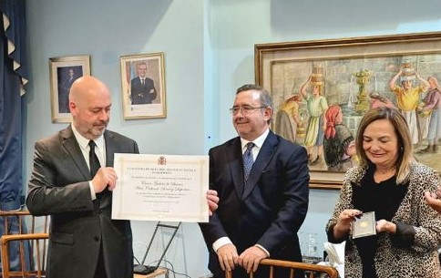 En la sala de juntas, Elena Bernardo entregó la Medalla al centro y Zarco, el diploma acreditativo de la distinción. “El Centro de Galicia en Buenos Aires nació para unir a la venturosa comunidad gallega”, aseguró Bernardo durante la entrega. “El proyecto fue y es –reflexionó– apoyar a todas las personas migrantes en su inserción social, económica y cultural, preservar la cultura, las tradiciones gallegas y españolas y servir de valuarte aquí de todos los españoles y españolas”.